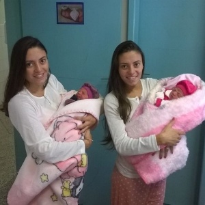 Duas gêmeas idênticas de 23 anos deram à luz duas meninas no domingo (26), na mesma sala de parto do hospital São Donato, da rede pública de Içara, no sul de Santa Catarina. Emanuelle e Valentina, filhas de Joyce e Jéssica Lino, respectivamente, nasceram de parto normal, com intervalo de apenas três horas.