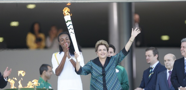Dilma em cerimônia de acendimento da tocha olímpica no Palácio do Planalto.A