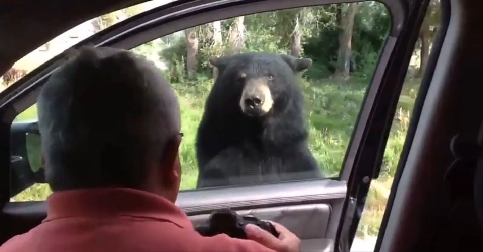 assustadora ao cruzar com um urso dentro do parque de Yellowstone, nos Estados